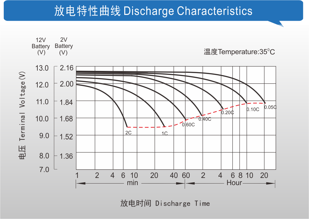 高温使用寿命长,长期在35℃高温下工作,可以达到常规AGM电池25℃下的浮充使用寿命;